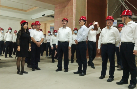 在尼山賓舍施工現(xiàn)場,吳國平向校榮春一行講述該項(xiàng)目的設(shè)計(jì)理念及重大意義,希望八局能再接再厲,確保工程盡早交付使用;在尼山會(huì)堂現(xiàn)場,吳國平對(duì)八局項(xiàng)目高標(biāo)準(zhǔn)、高質(zhì)量、高速度建設(shè)成果表示充分肯定,對(duì)兩項(xiàng)目團(tuán)隊(duì)展現(xiàn)的高效建造實(shí)力、“魯班精神”表示高度認(rèn)可。