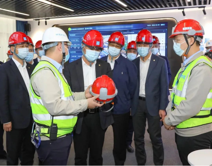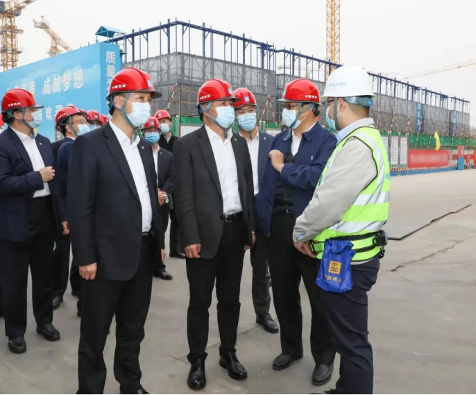 在項(xiàng)目現(xiàn)場(chǎng),張兆祥實(shí)地察看項(xiàng)目建設(shè)進(jìn)展,認(rèn)真檢查項(xiàng)目疫情防控和安全生產(chǎn)工作,仔細(xì)詢問農(nóng)民工工資支付和基層黨建工作開展情況,詳細(xì)了解項(xiàng)目5G智慧建造和BIM系統(tǒng)應(yīng)用情況,對(duì)項(xiàng)目安全管理、質(zhì)量管理和永臨結(jié)合的綠色施工方式表示肯定。
