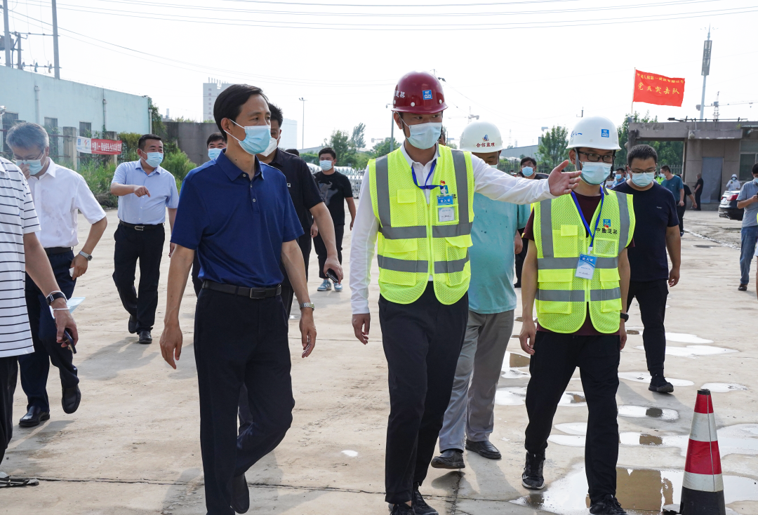 8月16日,中建八一黨委副書記、總經理牛化憲到項目調研,聽取了項目建設情況匯報,實地察看了項目建設進度,并對項目團隊15個日夜的辛苦堅守與付出表示慰問和感謝。
