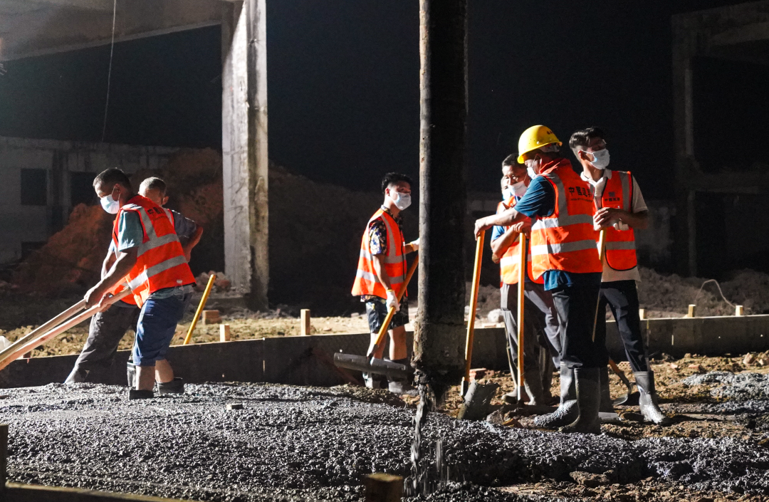 本次援建工期緊、任務重,項目團隊挑燈夜戰,8月1日天亮前完成方案出圖并順利通過專家審核意見。當晚,首批400余名工人、20余臺機械車輛進場。