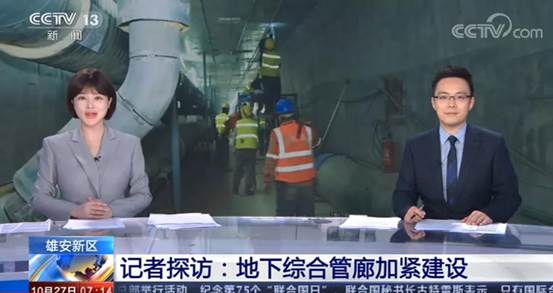 10月27日,CCTV-13《朝聞天下》、CCTV-13《新聞直播間》,CCTV-2《天下財(cái)經(jīng)》欄目以《雄安新區(qū) 記者探訪:地下綜合管廊加緊建設(shè)》為題,連續(xù)報(bào)道了中建八局一公司參與建設(shè)的雄安站樞紐片區(qū)市政道路、綜合管廊、排水管網(wǎng)系統(tǒng)(一期)工程,指出地下綜合管廊建設(shè)是執(zhí)行“先地下后地上”方案,推動(dòng)雄安基礎(chǔ)設(shè)施建設(shè)的重要內(nèi)容。
