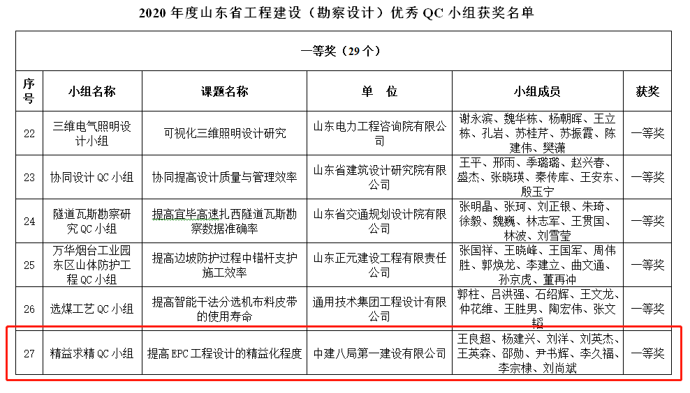 2020年度山東省工程建設(勘察設計)QC小組評選活動已經結束。 全省共有404個QC小組參加評選,經專家評審共評出一等獎29個,二等獎65個,三等獎139個。