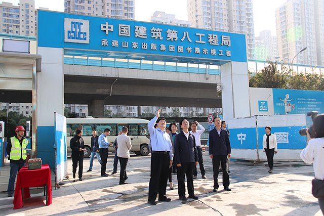 10月8日,濟南市市中區委書記韓永軍及各部門負責人一行二十余人,來到山東出版集團圖書展示樓項目觀摩指導工作。
