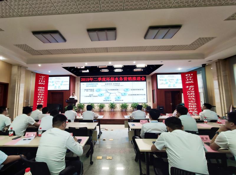 6月22日下午,公司2019年二季度環保水務營銷推進會在公司二樓培訓中心舉行,公司黨委副書記、工會主席李云、副總經理齊朋,安裝公司總經理姜修濤、黨委書記梁忠誠、各相關單位營銷人員、環保水務事業部全體人員參加了本次會議。