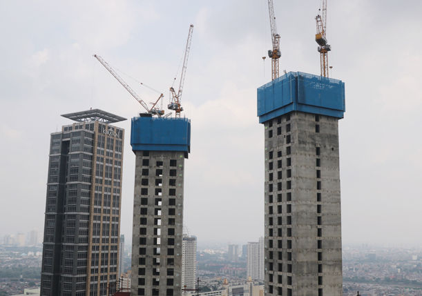 近日,印尼一號雙塔項目南塔樓F37-F38層核心筒混凝土順利完成澆筑,標志著項目全面突破200m高度,進入新的施工階段。