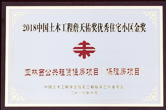 11月1日,“2018中國土木工程詹天佑獎優秀住宅小區技術交流會暨頒獎儀式”在北京舉行,公司亞林西公共租賃住房項目從全國眾多優秀項目中脫穎而出,獲此殊榮!