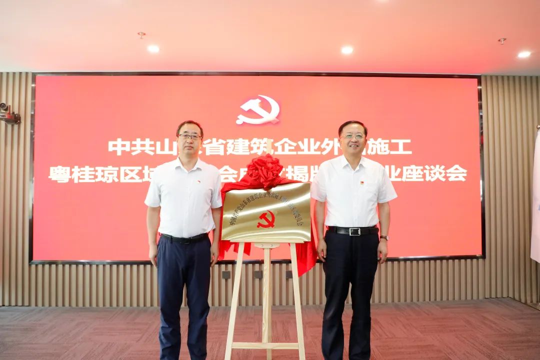 9月20日,中共山東省建筑企業外出施工粵桂瓊區域委員會在廣東舉行揭牌儀式,山東省住房和城鄉建設廳黨組成員、副廳長、省建筑企業外出施工行業黨委書記王潤曉,廣東省住房和城鄉建設廳總經濟師王瑜為區域黨委揭牌。