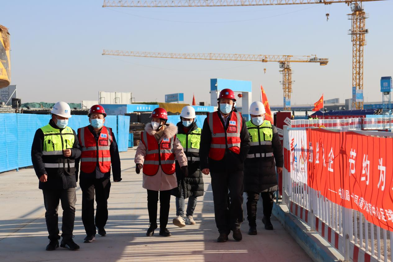 1月28日,中建八局山東分局黨委副書記、紀委書記張繼穎及副局長張敬存、副局長張善友到濟南黃河體育中心足球場項目開展帶班檢查。