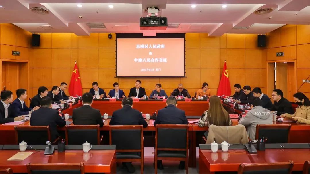 1月13日,中建八局副總經理儲小彬赴廈門開展短期工作,拜會思明區常委、副區長王華琪,并與象嶼集團黨委書記、董事長張水利,黨委委員、副董事長方弘哲舉行會談,就合力推進思明區未來城市建設發展進行深入交流。