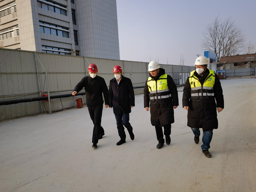 1月22日,正值農歷大年初一,濟南市住建局副局長武兆軍到省立醫院應急醫學中心綜合病房樓建設項目檢查指導工作,濟南市質安處處長趙繼光,濟南市工程質量與安全中心主任張健,濟南市工程質量與安全中心科長陳欣樂,中建八局一公司助理總經理李允斌,項目經理撒勝生,項目總工周生寶陪同檢查。