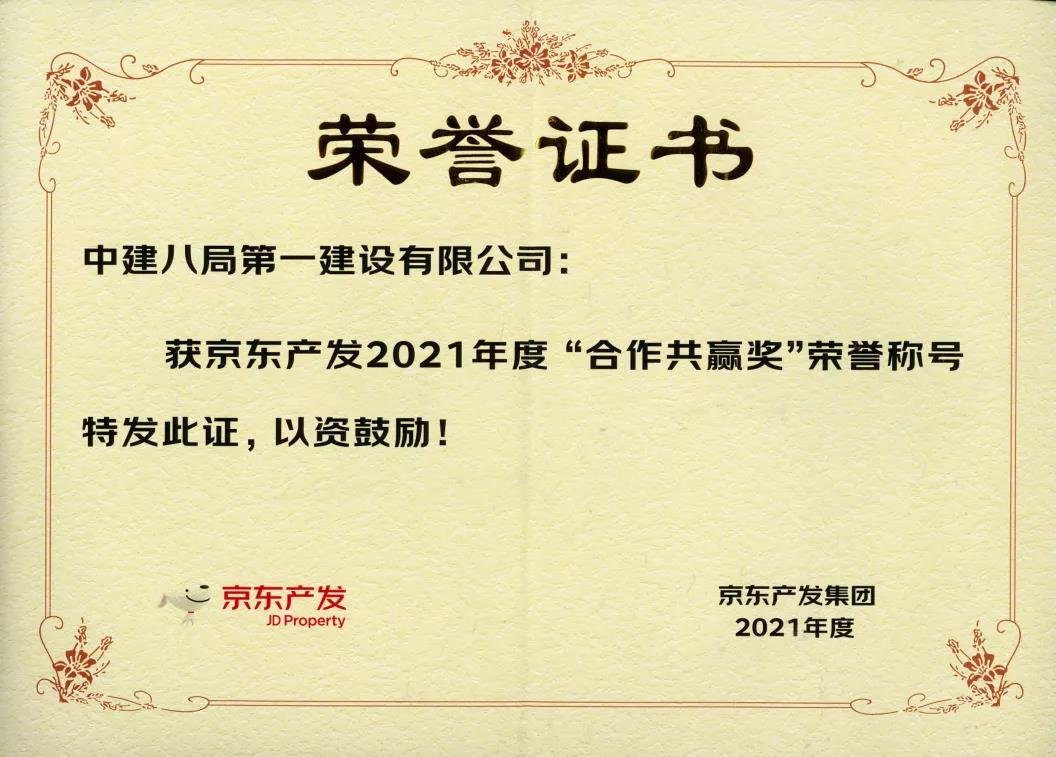 近日,中建八局一公司榮獲京東集團頒發的“合作共贏獎”,成為獎項創立以來首次獲獎的總承包施工單位,也是2021年京東集團頒發的唯一一項“合作共贏獎”。