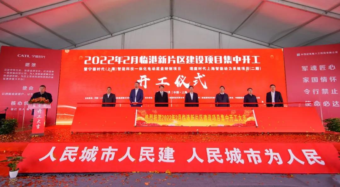 2月19日,臨港新片區在中建八一承建的寧德時代(上海)智能科技一體化電動底盤研制項目、瑞庭時代上海智能動力系統項目(二期)舉行2022年2月建設項目集中開工儀式。