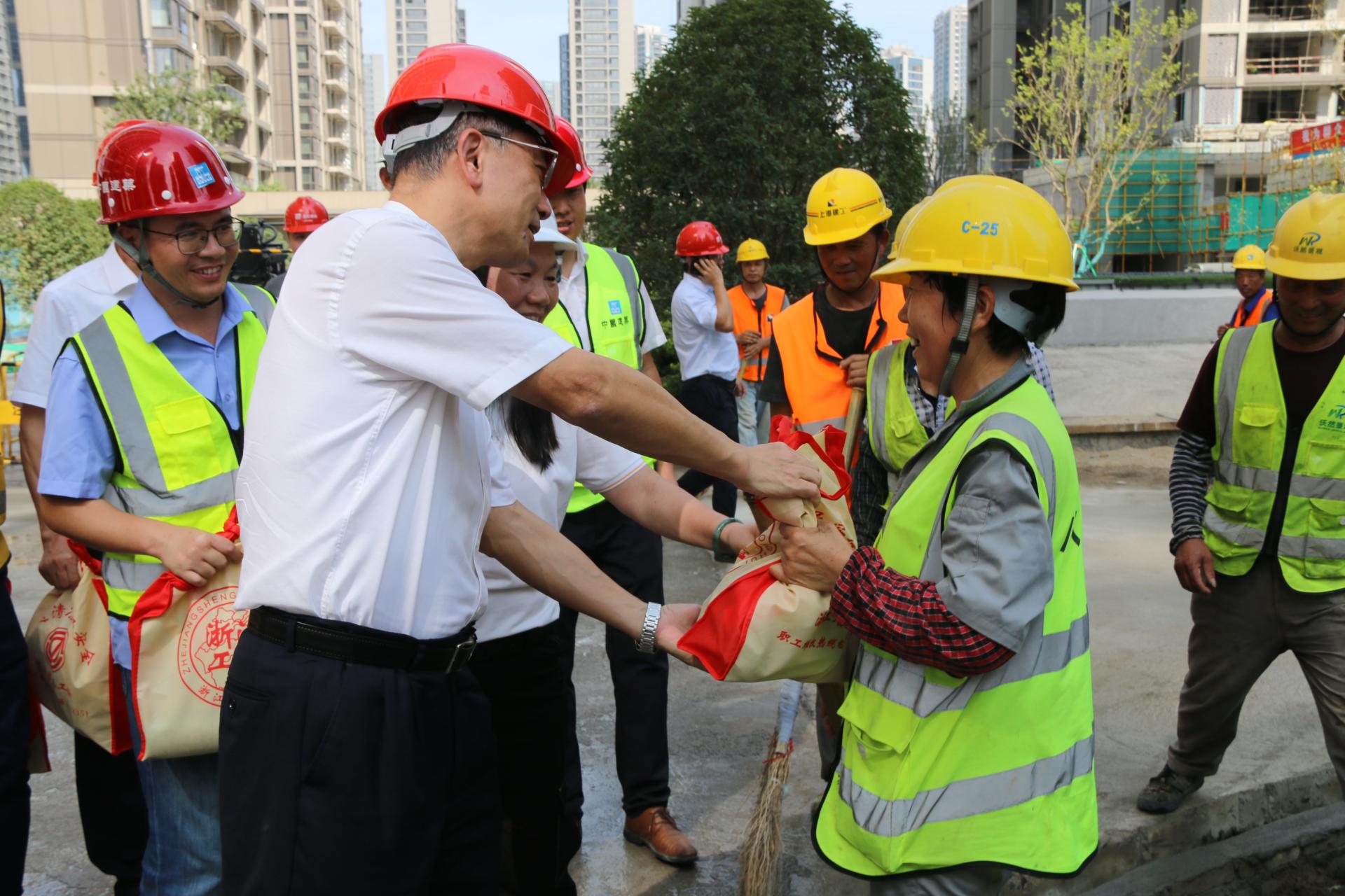 7月15日,浙江省人大常委會副主任、省總工會主席史濟(jì)錫一行到公司承建的杭州亞運(yùn)村項(xiàng)目建設(shè)現(xiàn)場,開展高溫慰問活動。