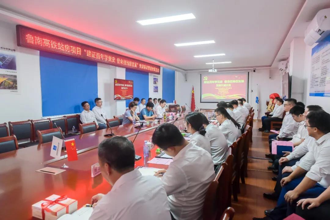 6月8日,魯南高鐵站房項目在項目指揮部開展“建證百年學(xué)黨史·使命擔(dān)當(dāng)促發(fā)展”黨建聯(lián)建暨講黨課活動。