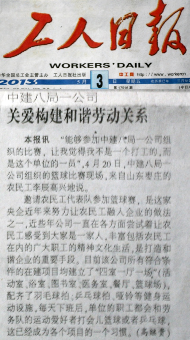 賽后,工人日報、中工網(wǎng)、山東工人報、青島晚報、濟南工會網(wǎng)對公司及勞務(wù)隊相關(guān)人員進行了采訪,了解了公司近年來在關(guān)心關(guān)愛農(nóng)民工、擔(dān)當央企社會責(zé)任方面所做的工作,并給予好評。截止目前,除工人日報、中工網(wǎng)、山東工人報、青島晚報、濟南工會網(wǎng)、中國建筑新聞進行了報道外,人民網(wǎng)中國工會新聞版、和諧勞動網(wǎng)、青島全搜索網(wǎng)也進行了轉(zhuǎn)載,有效宣傳了公司形象。