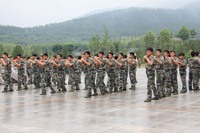 在李董事長的指示下,伴隨著雄壯的《中國人民解放軍進行曲》,新員工們身著迷彩,邁著整齊有力的步伐走過主席臺,進行了列隊式、分列式等表演。“令行禁止,使命必達”,伴隨著嘹亮的口號,二連的男員工們表演了虎虎生威的軍體拳。巾幗不讓須眉,在交通指示動作的表演中,女員工們的颯爽英姿也給人留下了深刻的印象。新員工們整齊劃一的動作、飽滿向上的狀態贏得了陣陣掌聲,充分展現了八局新兵的鐵軍精神和氣概。最后,隨著全體新員工手語操表演――《感恩的心》的結束,整個軍訓匯報表演畫上了圓滿的句號。