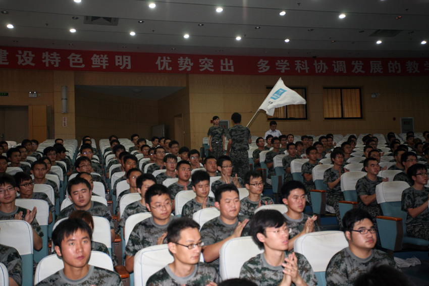 接下來的活動中,公司副總經理寧文忠宣讀了公司“鐵軍講堂”創辦通知。董事長徐愛杰與黨委書記許紅為鐵軍講堂揭牌,標志著中建八局一公司“鐵軍講堂”正式開班。徐董事長為新員工授予了代表中建精神的中建司旗,司旗在隊員手中依次傳遞,代表中建精神遍布四方。在之后的新員工代表和教官代表發言中,新員工表示一定不辜負公司領導的期望,在軍訓中努力培養自己的鐵軍作風,盡快融入一公司這個鐵軍團隊;而教官代表則表達了對做好新員工軍訓的信心和決心。最后黨委書記許紅發表總結講話,許書記對新員工提出了明確的要求和期望。她指出,啟動此次校企合作和鐵軍講堂,旨在借助高校師資優勢和新的培訓形式,為公司各系統各崗位輸送需要的人才。并勉勵新員工要擺正心態、適應角色轉換;集中精力,認真學習思考;敢于吃苦,積極參加訓練;加強溝通,增進團結交流。