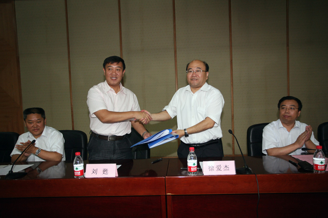 照片3:徐董事長和劉�副校長簽訂校企合作協議書