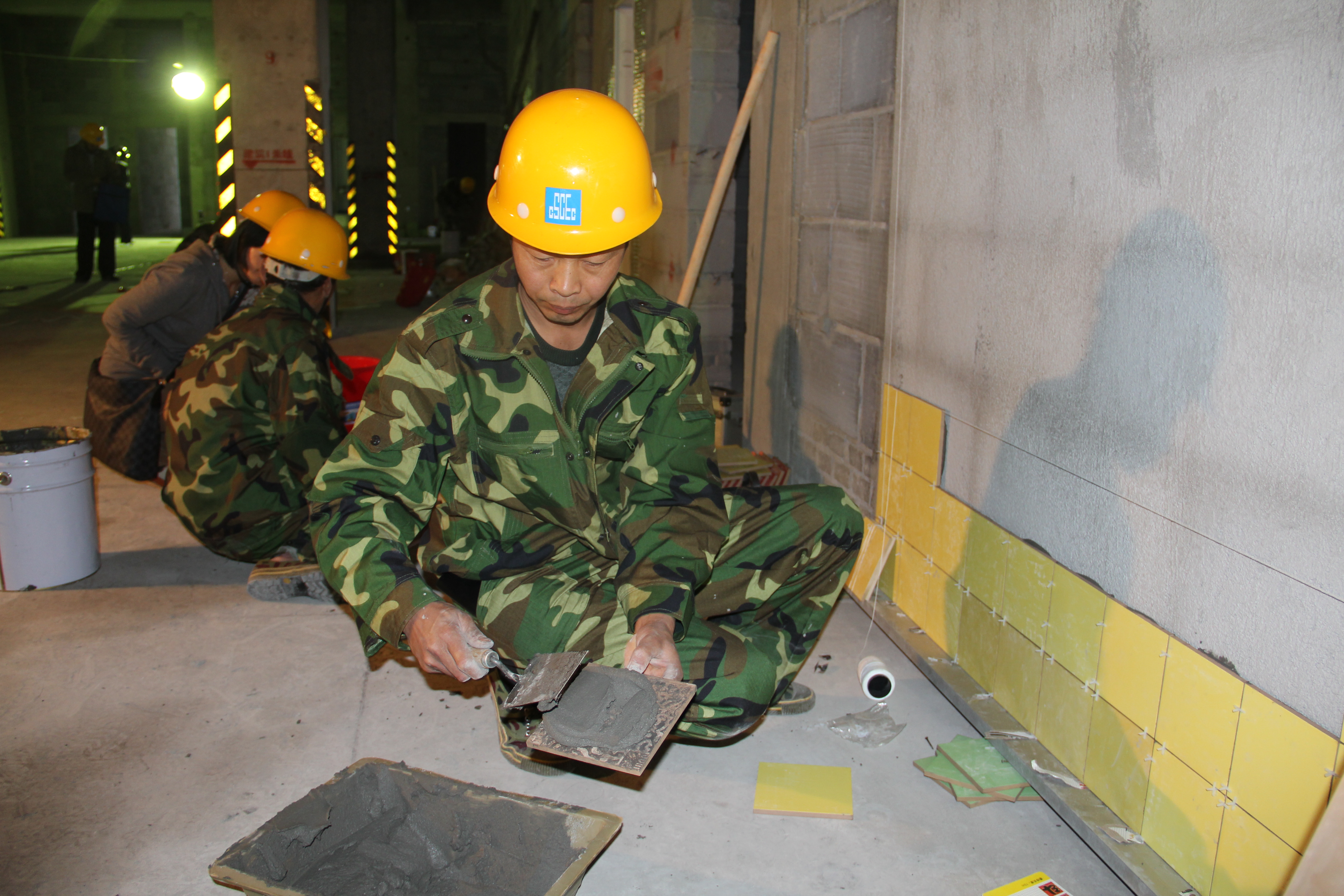 寧總首先致開幕詞,裁判員代表、勞務工人代表分別進行了宣誓。上午9時整,公司工會辦公室副主任畢延寶宣布比賽正式開始。本次比賽分為理論知識考試和技能實操比賽,比賽工種包括砌筑工、鑲貼工。在作業比賽中,參賽的勞務工人紛紛展示了各自精湛的技藝,令在場的觀摩人員連聲稱贊,各比賽團隊為充分展現自身實力,均拿出了“看家本領”,技能比賽進行得十分激烈。