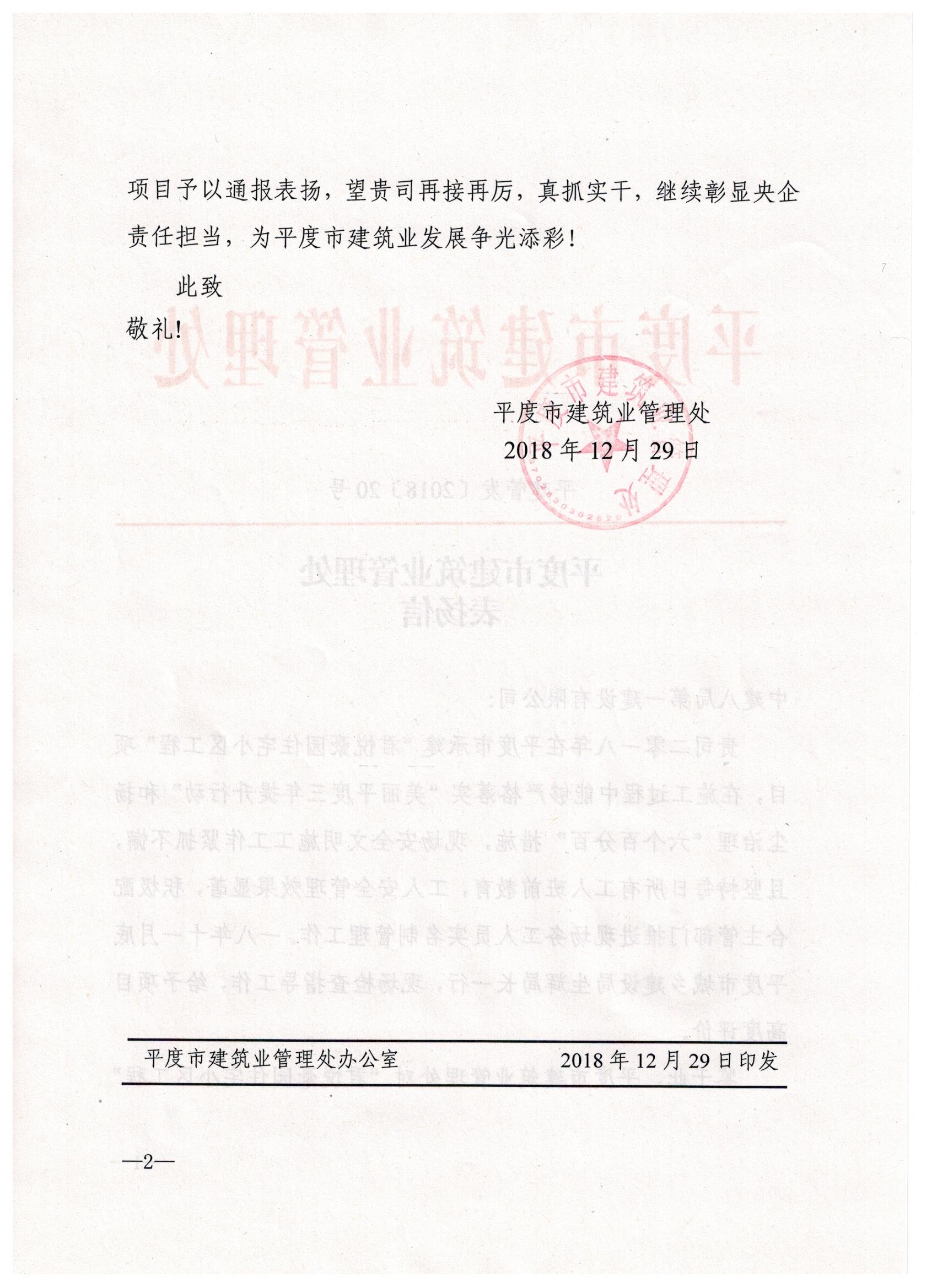 近日,青島公司平度君悅豪園住宅小區(qū)項目喜獲平度市城鄉(xiāng)建設(shè)局表揚信,信中著重贊揚我司項目上開展的安全文明施工各項具體工作,并對工程后續(xù)建設(shè)寄予厚望。