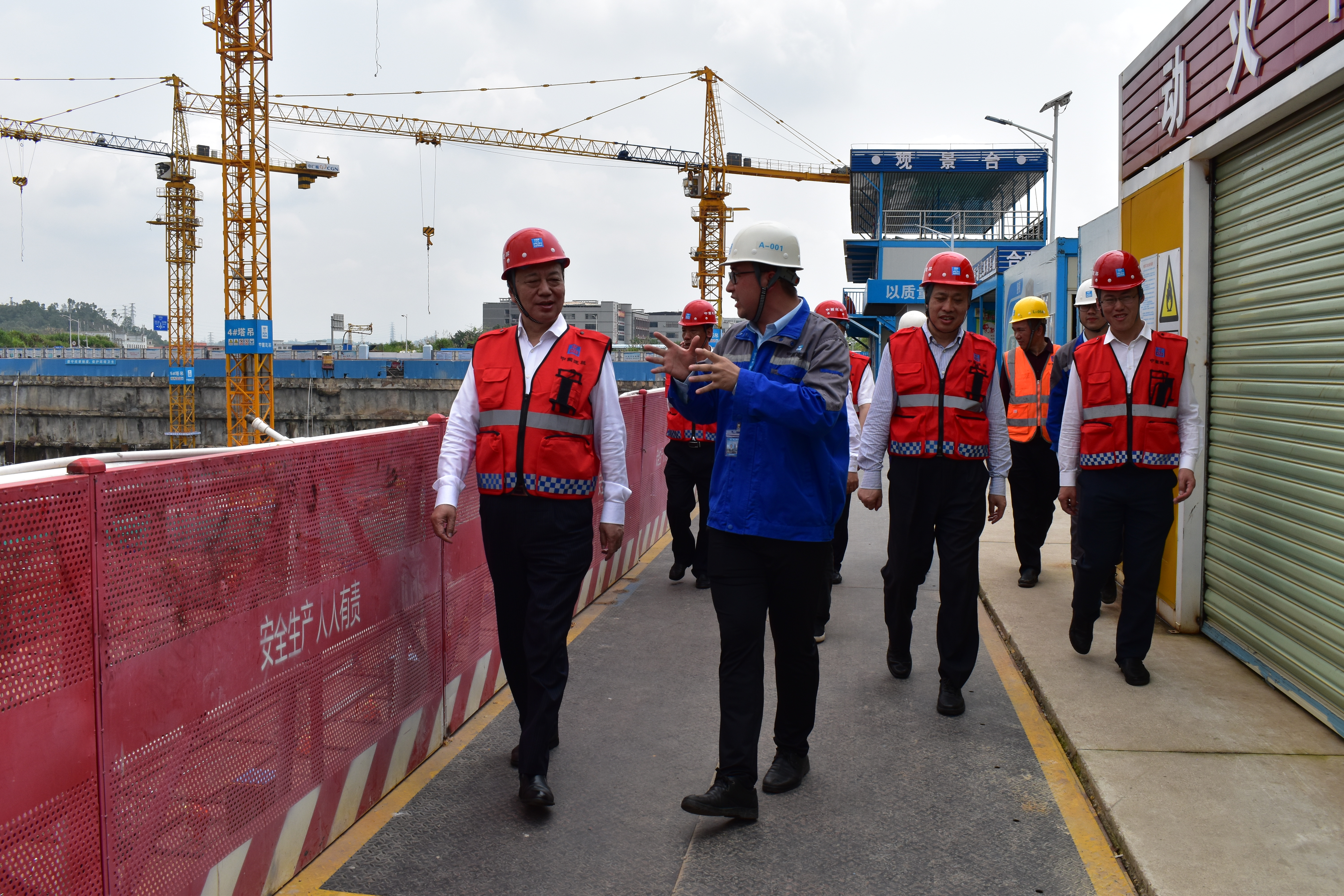 4月17日,局黨委書記、董事長校榮春、局副總經理韓興爭、華南分局黨委書記許啟新、華南分局副局長楊深奎、一公司副總經理齊朋等一行蒞臨中廣核項目對安全生產、項目履約、創新創效等工作進行全方位、多角度突擊指導,華南公司黨總支副書記谷力,項目經理宮華路、項目總工陳先磊、項目生產經理王世杰陪同。
