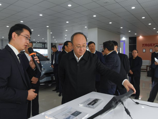 尹力一行首先在現場指揮部觀看了項目宣傳視頻,了解了項目的整體概況。隨后,一行人察看了燈箱片、沙盤以及信利產品應用展示,聽取了項目規劃建設情況和產品情況的匯報。尹力表示:信利項目全面投產后對引進電子信息上下游配套企業,延伸產業鏈條,打造良好產業生態具有重要的帶動作用,他要求企業注重節約利用土地資源,持續提高投資強度和產出效益。