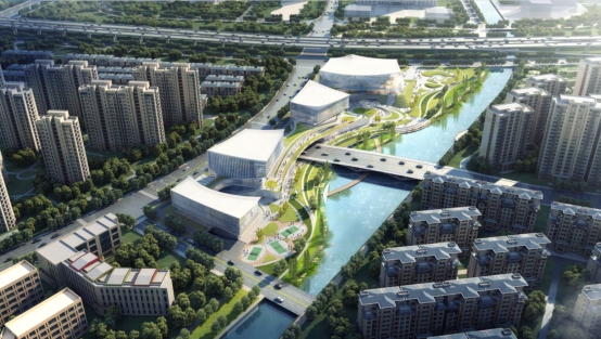 溫州高新文化廣場項目位于龍灣城市中心區A街區核心地塊,位于甌海大道北側,龍祥路西側,緊鄰雙橋河東岸,總建筑面積79516平方米,總投資額10.15億元,包含1200座乙級大劇院、300座多功能廳的文化中心、青少年教育學習的活動中心和集衛生服務、商業、社區文化活動用房等功能為一體的社區配套中心,旨在打造龍灣乃至溫州的文化藝術標志性建筑。