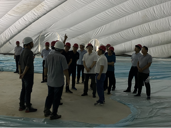 江敦濤一行到路演中國現場,先聽取了工程進展情況的匯報。然后深入項目實地察看,就項目的使用功能提出了新要求,特別提出要做好消防論證后增加的防塌落架及避難走道等施工內容的準備工作,最后要求中建八局全力保障814啤酒節開幕,做好活動期間項目的維護工作。