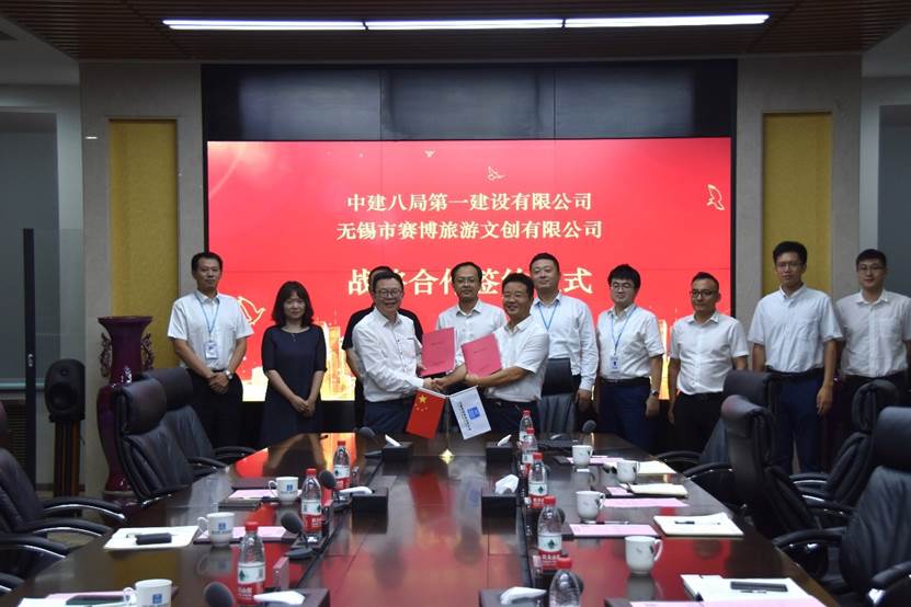 7月16日下午,中建八局第一建設(shè)有限公司與無錫市賽博旅游文創(chuàng)有限公司簽署戰(zhàn)略合作協(xié)議。無錫市賽博旅游文創(chuàng)有限公司董事長徐忠明一行4人,公司副總經(jīng)理王有標,市場客戶部副經(jīng)理蔡永飛,設(shè)計研究院書記、院長王良超,副院長鄧波等出席儀式。