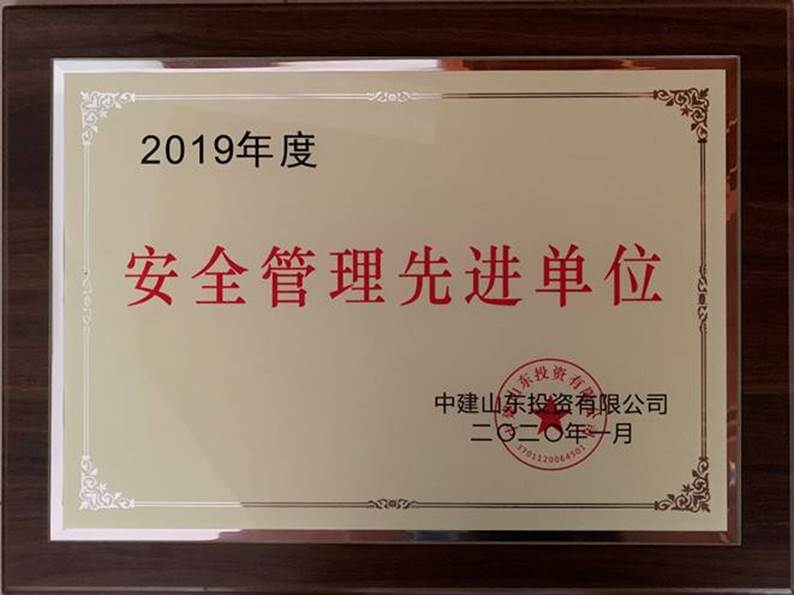 憑借全體人員不懈努力,項目在安全管理方面已榮獲一系列榮譽,包括山東高速集團有限公司2019年度先進班組、中建山東投資有限公司2019年度安全管理先進單位等榮譽稱號,項目安全總監徐子軍還榮獲中國建設基礎設施有限公司年度安全管理先進個人稱號。