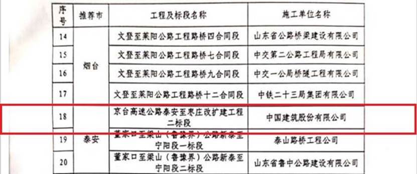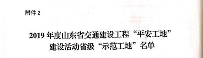 《山東省交通運輸廳關于2019年度交通建設工程平安工地建設省級“示范工程”和“示范工地”評選情況的通報》近日發布,京臺高速公路泰安至棗莊改擴建工程二標段“榜上有名”,榮獲平安工地建設活動省級“示范工地”稱號。