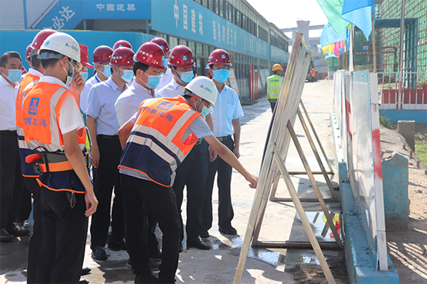 在項目現(xiàn)場,劉玉江詳細詢問了現(xiàn)階段工期要求下的施工進度,以及需要政府協(xié)調(diào)解決的問題。在聽取了項目經(jīng)理關(guān)于現(xiàn)階段施工進度的匯報后,他贊揚了中建八局的鐵軍精神,要求在落實好疫情防控舉措的前提下,加快項目建設(shè)進度,抓好工程質(zhì)量和施工安全,確保項目按時交付使用。