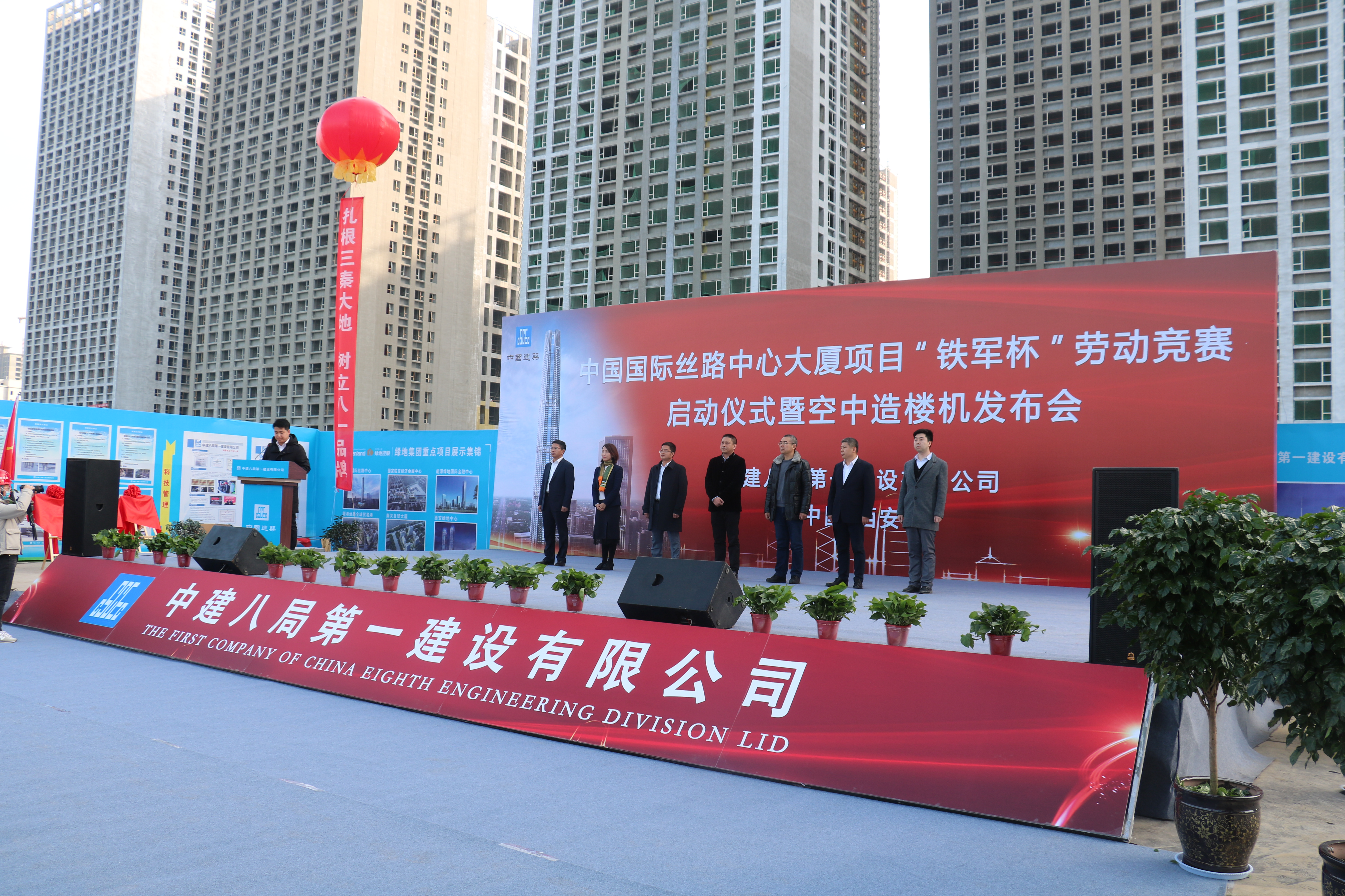 12月24日,“中西部第一高”——中國國際絲路中心大廈項目舉辦 “筑西北之巔、建絲路地標揚鐵軍精神、樹八一品牌”為主題的勞動競賽啟動儀式暨空中造樓機發布會,吹響工程建設沖鋒號,來自政府、業主及公司的三方代表共120余人參加活動。