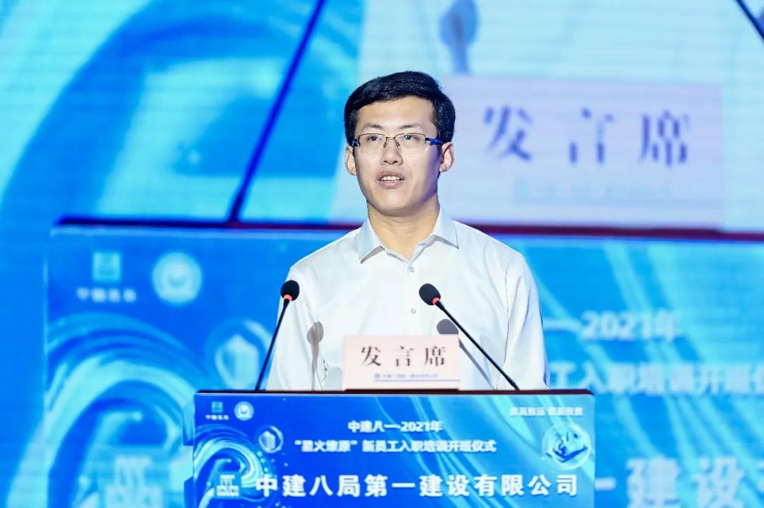 開班儀式后,齊朋首先向新員工傳達(dá)中建八局黨委書記、董事長(zhǎng)李永明“致2021屆‘新砼人’的一封信”。齊朋以《努力奔跑 持續(xù)奮斗 我們都是追夢(mèng)人》為題授課,從“走進(jìn)建筑業(yè)、了解中建八一、認(rèn)識(shí)建筑人”三個(gè)部分,為小鐵軍講述中建八一的歷史起源、企業(yè)文化等,詳細(xì)解讀了公司“十四五”發(fā)展規(guī)劃,使全體小鐵軍對(duì)公司情況有了全方位的了解。