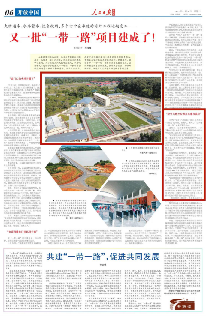 11月30日,《人民日報》刊文《又一批“一帶一路”項目建成了!多個由中企承建海外工程近期完工》點贊報道中建八局一公司在“赤道上”參建的加蓬利伯維爾綜合學校項目。