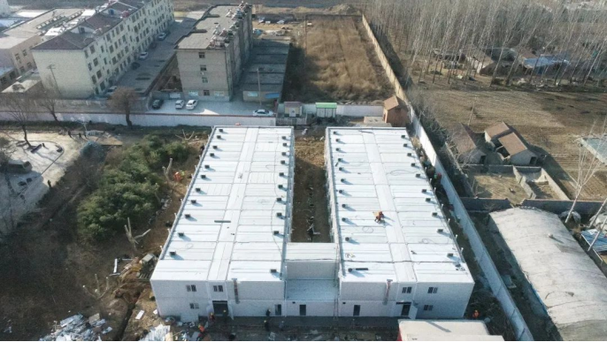 3月3日,經過500余名建設者、20余臺機械設備的日夜奮戰,歷時九天,濟南鋼城區隔離點130套隔離觀察房正式交付,成為中建八一援建的第11座防疫工程。