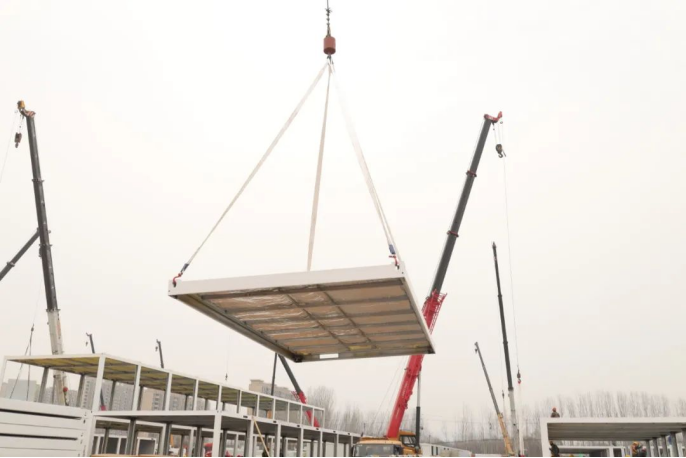 3月19日,各區域同時開工。10小時完成場地平整3.5萬平方米;20小時完成16棟箱房基礎模板支設;12小時完成基礎混凝土澆筑;6小時完成8900平方米室外道路硬化;48小時完成室外管道鋪設2800余米;72小時完成892間箱房組裝;48小時完成10萬余米電線電纜鋪設。28日晚,892間標準箱房全部亮燈;29日,成功交付504套隔離觀察房。