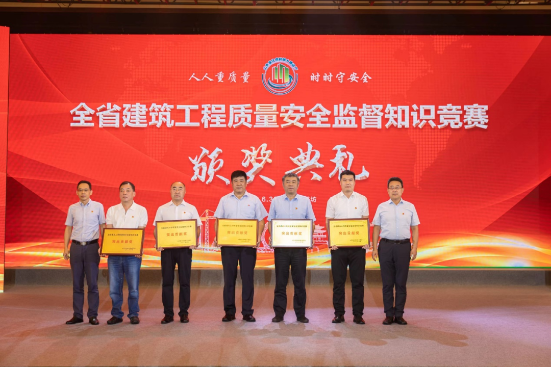 近日,山東省建筑工程質量安全監督知識競賽企業爭冠賽落下帷幕。中建八局一公司通過初賽、復賽、團隊晉級賽以及決賽的激烈角逐,在2042家單位、5.1萬參賽人員、192支隊伍中脫穎而出,榮獲質量方向一等獎。除比賽隊伍獲得獎項外,中建八局一公司及數字科技公司榮獲突出貢獻獎。