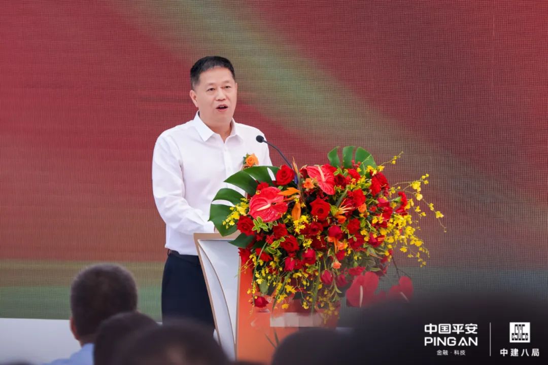 近日,深圳平安信用卡大廈首節鋼柱吊裝暨項目動員會在項目現場召開,平安銀行、平安銀行信用卡中心、平安不動產相關負責人,中建八局華南分局黨委書記郭青松出席動員會。