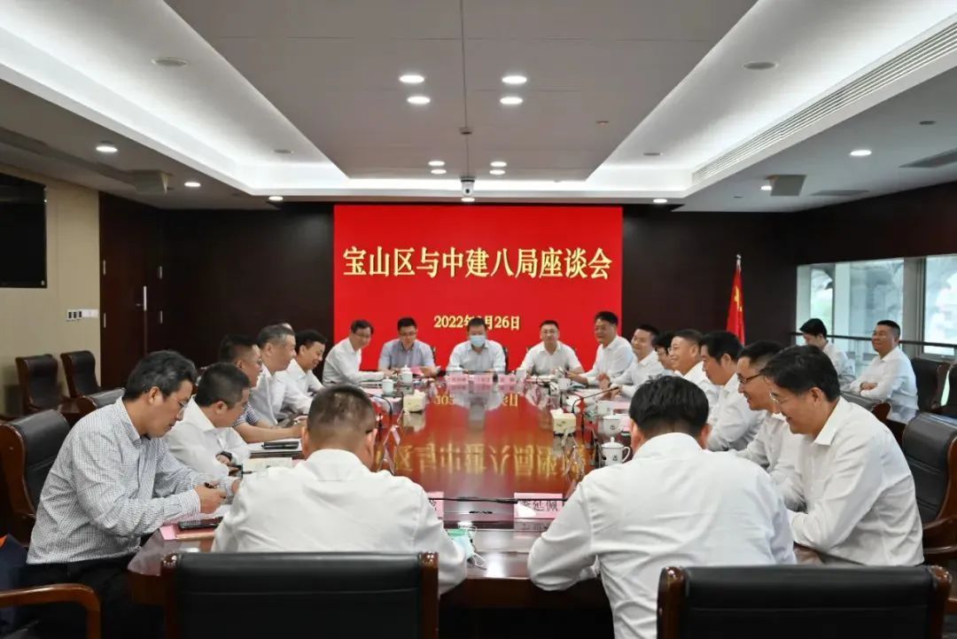 寶山區(qū)委辦公室、區(qū)政府辦公室、區(qū)發(fā)展改革委、區(qū)交通委、區(qū)規(guī)劃資源局、區(qū)住房保障房屋管理局、吳淞開發(fā)建設(shè)公司、南大開發(fā)建設(shè)公司,中建八局人力資源部、華東分局、中建八局一公司有關(guān)負責(zé)人參加會談。