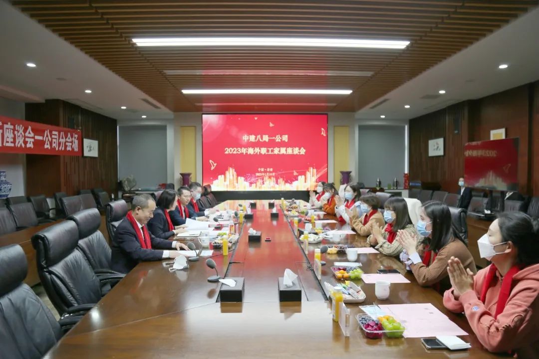 1月14日,中建八局一公司舉辦2023年海外職工家屬座談會。中建八局一公司黨委副書記、工會主席聶麗、工會工作部、海外公司相關負責人及海外員工家屬代表等參加座談活動。