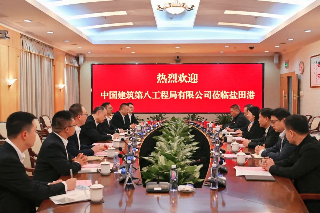 3月3日,中建八局副總經(jīng)理韓興爭在深圳與深圳市鹽田港集團黨委書記、董事長胡朝陽會談。雙方就進一步深化戰(zhàn)略合作,服務(wù)城市建設(shè)開展深入交流。鹽田港集團總工程師肖明俊參加會議。