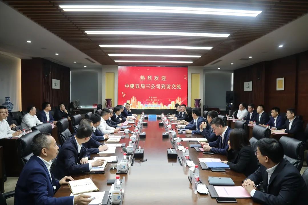 3月28日,中建五局總經理助理兼三公司黨委書記、董事長陳勇帶隊,到訪中建八局一公司開展工作交流。中建八局一公司黨委書記、董事長齊朋熱情接待,雙方就進一步加強學習合作、推動企業高質量發展進行了深入交流。