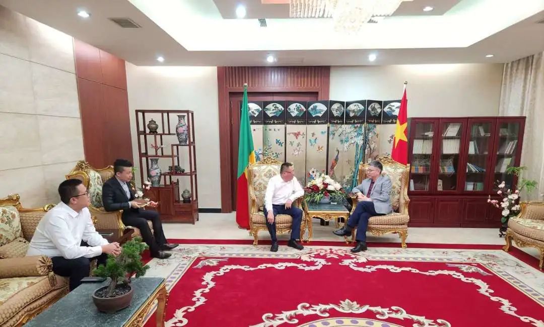 為加強與當地的聯系互動,調研期間,辛建龍一行前往中國駐貝寧大使館拜訪彭驚濤大使。