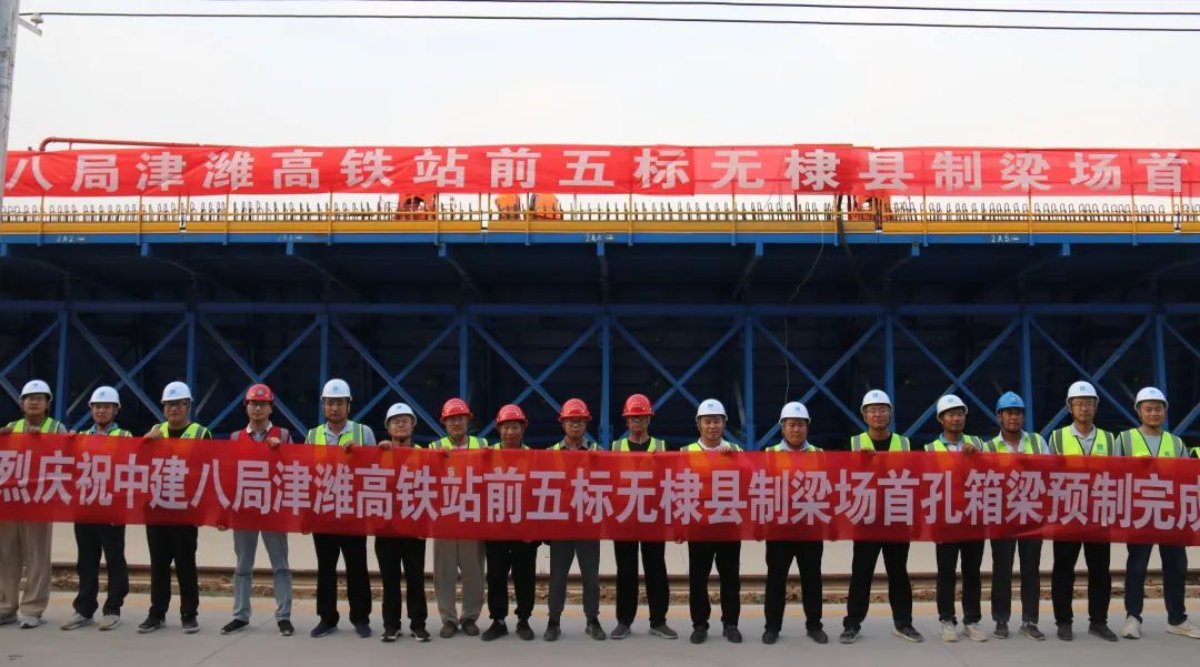 近日,中建八局津濰高鐵站前工程五標完成首孔箱梁的澆筑工作,標志著全線888孔箱梁預制工作正式拉開帷幕,梁場進入試生產階段。