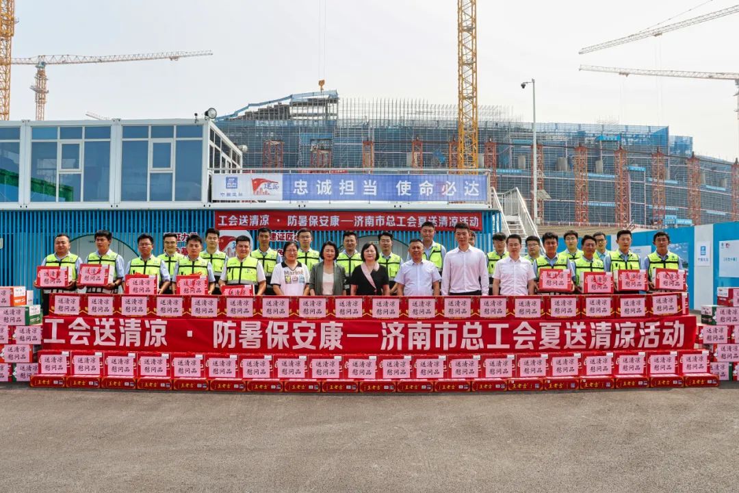 7月20日,濟南市總工會赴濟南黃河體育中心專業足球場項目開展“夏送清涼”慰問活動,濟南市總工會黨組成員、副主席申世平,直屬工會聯合會主席張云來,女職工部副部長秦立艷,公司黨委副書記、工會主席聶麗,工會工作部及濟南公司相關負責人參加。