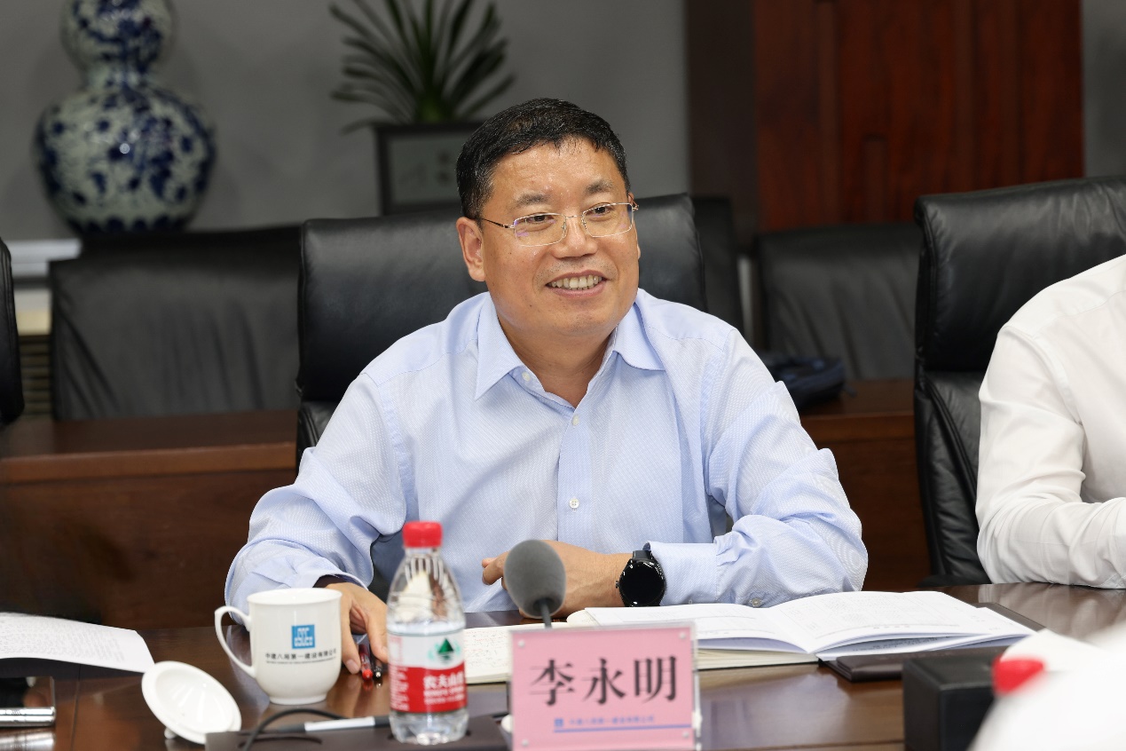 8月30日上午,調研組首先赴中建八局一公司總部開展綜合調研座談會。李永明對公司發展成效表示高度肯定,對一公司領導班子及員工銳意進取、實干擔當、改革創新的精神表示認可。他表示,集團黨組高度重視項目履約、商務管理工作,將以本次調研為契機,梳理總結基層的好經驗好做法,為進一步提升集團項目精益管控能力和價值創造水平打下堅實基礎。