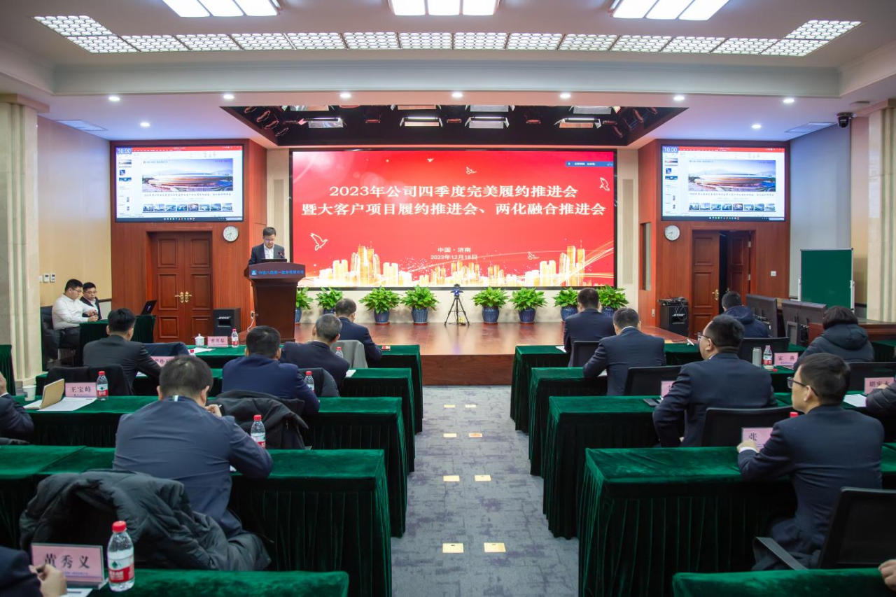 為全面總結公司四季度安全、生產工作,分析研判安全生產系統新形勢新任務,部署2024年重點工作。12月18日,中建八局一公司2023年四季度完美履約推進會、大客戶項目履約推進會、兩化融合推進會暨2023年度項目管理成果交流評審會在濟召開。會議采取“主會場+視頻分會場”的形式,中建八局一公司副總經理霍文濤,總部相關部門負責人及相關二級單位,共800余人參會。