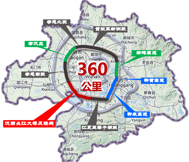 武漢都市圈環線高速全長360公里,經過武漢、鄂州、孝感、咸寧、黃岡多地,是湖北省及武漢市重點工程、國家高速公路網的重要組成部分,建成后將打通武漢至周邊重要城市1小時交通圈,促進城市之間“快捷暢通、高效連接”,推動城市圈交通一體化建設。