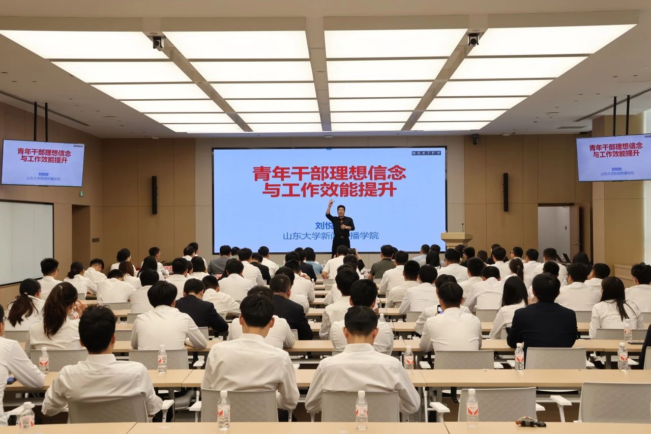 活動特邀山東大學新聞傳播學院教授、山東省共青團夢想導師劉悅坦進行現場授課。劉教授以《青年干部理想信念與工作效能提升》為題,用生動風趣的語言從“理想信念的一個根本、素質能力的二大修煉、工作效能的三大要領”三方面帶領學員重溫馬克思主義指引中國革命建設與改革、指引中國特色社會主義事業不斷走向勝利的光輝歷程。